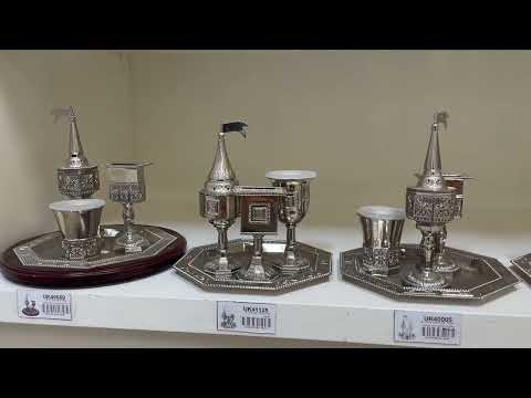 חסוך 50.00 ₪ 🚚 משלוח חינם! משפך יין מהודר "הנהרות" עם עיטורי פיליגרין מהממים. גביע מרכזי + 8 גביעים לחלוקה. מחיר מבצע עם שליח עד הביתמשפך יין "נהרות" מהודר (27*22 ס"מ) ציפוי מניקל, עם עיטורי פיליגרין עם 8 כוסות תואמות