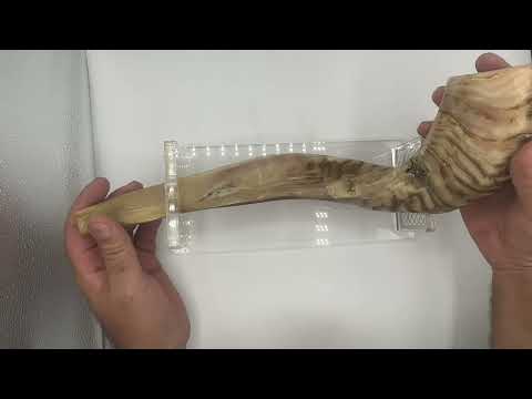סטנד לשופר מפרספקס (26*11 ס"מ) עם פלקטה חיתוך לייזר עיטורי "ותקעתם בשופר" מוזהב