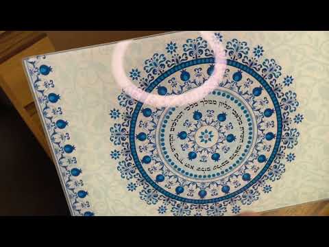 מגש חלה גדול (25*37 ס"מ) ומהודר מזכוכית צבעונית "שלום עליכם מלאכי השרת..."