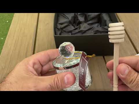כלי יוקרתי מקריסטל "שנה טובה" להגשת דבש (7*7 ס"מ) כולל רודה דבש