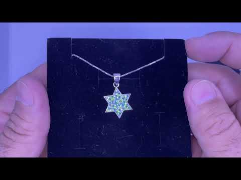 שרשרת "מגן דוד" (1.9*1.6 ס"מ) מכסף 925, קריסטלים ירוקים ולבנים