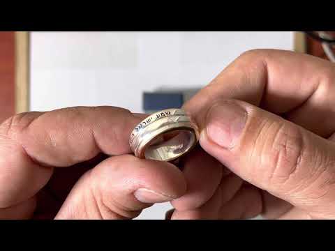טבעת מסתובבת כפולה מכסף 925 "שמע ישראל..." ו "ואני לדודי ודודי לי", ציפוי זהב
