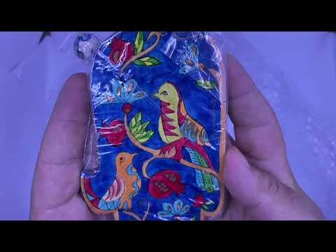 Small "Birds" Hamsa (5*3.5 cm) made of wood with a handmade painting by artist Yair Emmanuel