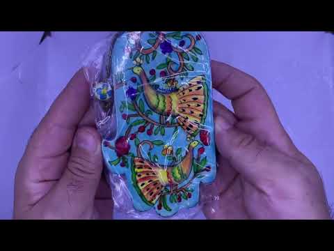 Large Hamsa Rack (23.5*16.7 cm) "Jerusalem" made of hand-painted metal coated with enamel - by artist Yair Emanuel