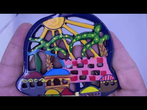 Hamsa Stand "Jerusalem Views" (15*11 cm) made of precision laser-cut metal and hand-painted - by artist Yair Emmanuel