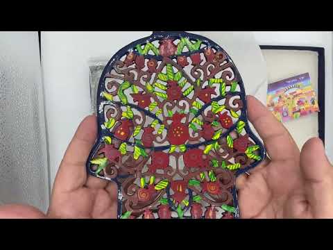 "Hamsa" stand (22*16 cm) colorful "olive tree" made of laser-cut metal, produced by artist David Gerstein