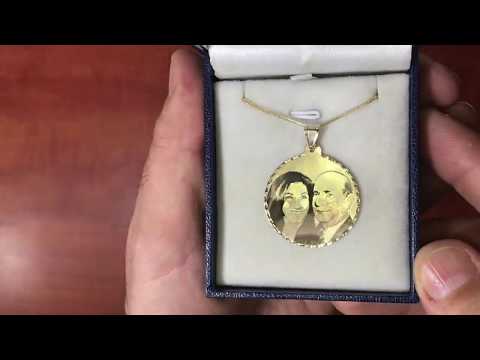 * חריטת תמונה איכותית במיוחד על גבי תליון “עיגול” (3 ס”מ בקירוב) גדול – תליון מרשים מזהב צהוב 14 קראט אמיתי (החריטה להמחשה בלבד).