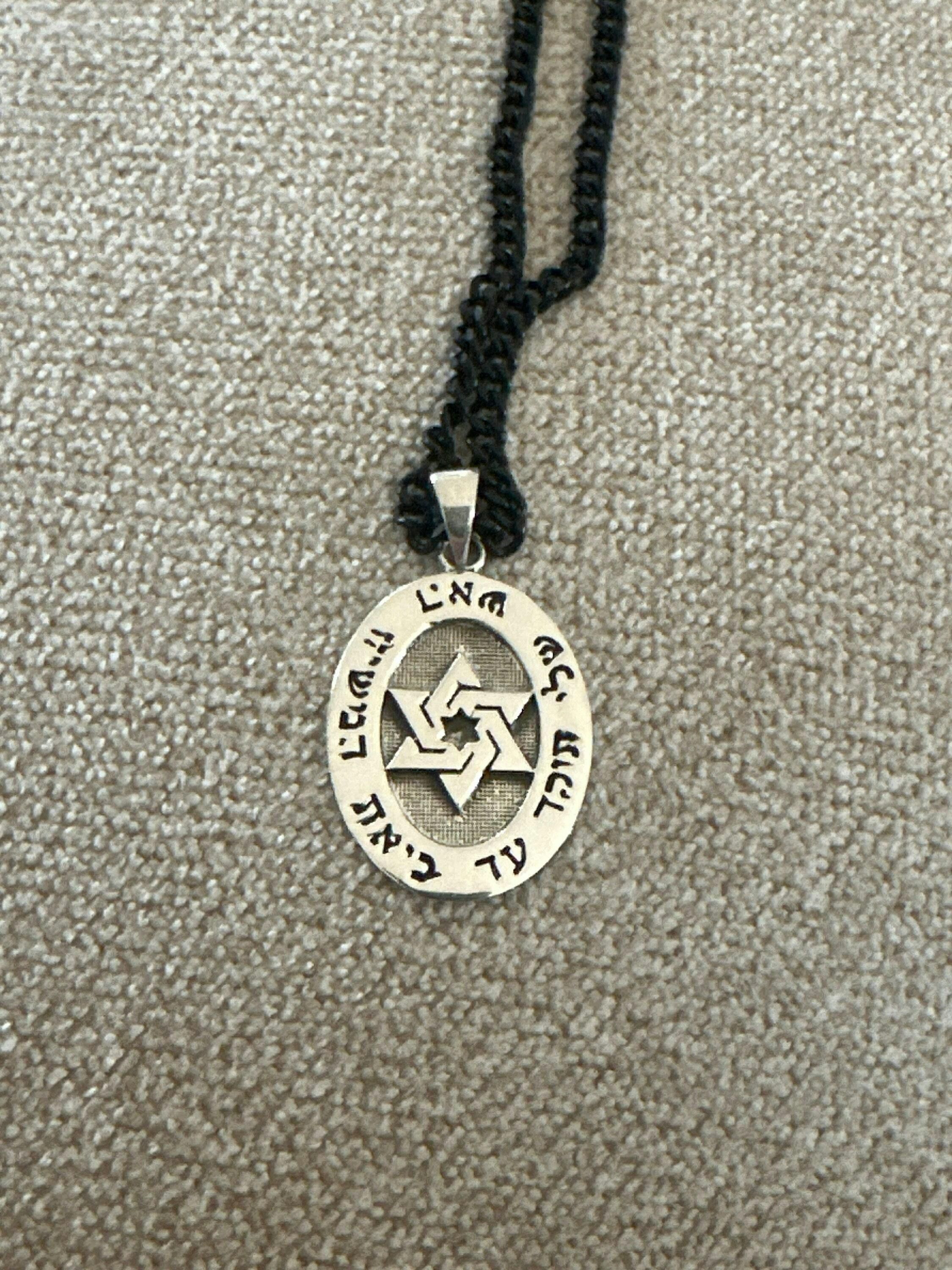 * שרשרת אובלית “האש שלי” מכסף סטרלינג 925 אמיתי, כיתוב: “האש שלי תוקד עד ביאת המשיח” ומגן דוד במרכז התליון.