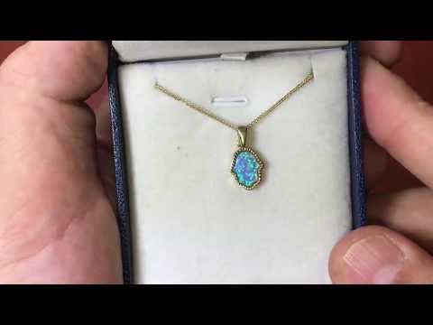Hamsa pendant (1.25*1 cm) in 14k yellow gold with opal stone
