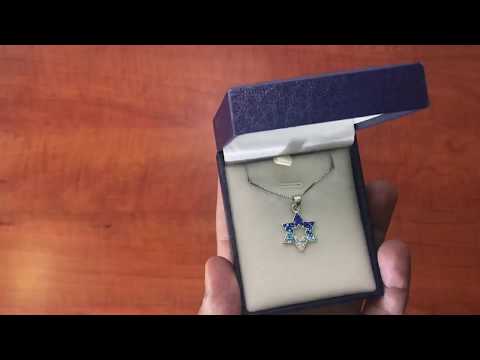 * שרשרת “מגן דוד” מכסף 925 אמיתי משובץ בקריסטלים בצבעי המדינה (3 גווני צבעים – כחול, תכלת, לבן) באמצעות “פרידו”. שיבוץ ידני באיכות גבוהה.