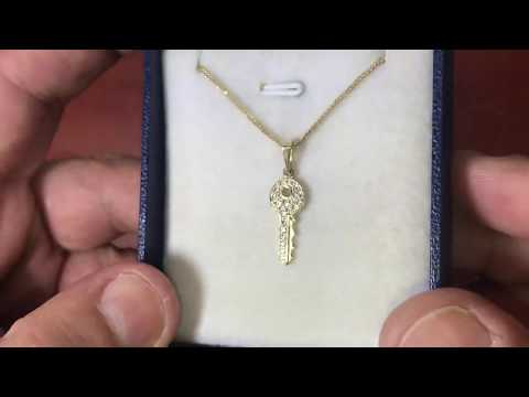 "Key" pendant (2.2*0.8 cm) in 14k yellow gold with crystals