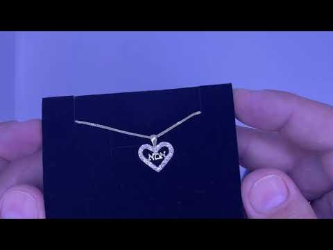 תליון לב משובץ קריסטלים לבנים. עם הכיתוב: "אמא". עשוי מזהב צהוב 14 קראט. מחיר מבצע אתר מתנות ישראל.