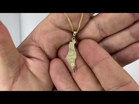 "Map of Israel" pendant (2.9*1 cm) in 14 karat yellow gold "Am Yisrael Chai"