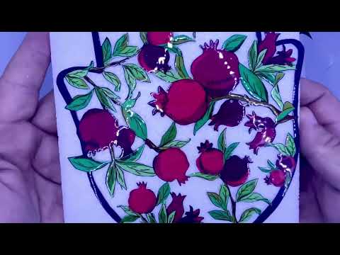 To achieve an artistic and impressive design in a variety of colors and designs of hamsa with red pomegranates, leaves and stems.