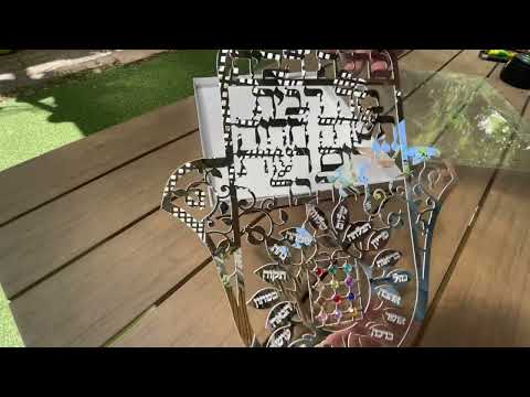 * מתלה חמסה גדולה (32*26.5 ס”מ) בחיתוך לייזר מדויק, עם ברכת הבית בעברית ו”עץ הברכות” עם אבני חושן.