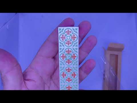 מזוזת "אריחים" מאקריל שקוף ( 3*14 ס"מ ) הדפס אריחים ועיטורים כתומים ירוקים. לקלף 12 ס"מ. ע"י האמנית דורית קליין