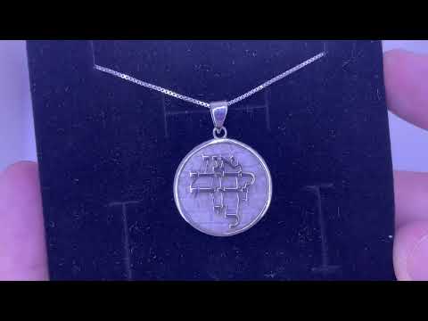 * תליון עגול מכסף 925 אמיתי משובץ באבן ירושלמית עם עיטורי חומות ירושלים. על גבי האבן הכיתוב: “אני לדודי ודודי לי” מכסף 925.