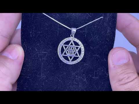 תליון עגול מכסף 925 עם הכיתוב אנא בכוח בראשי תיבות(אבג יתץ קרע שטן...). מגן דוד, חמסה וחי במרכז התליון.