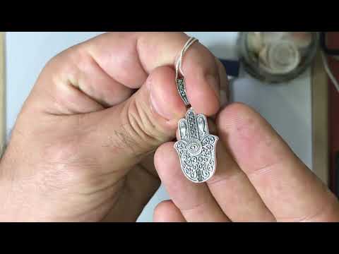 * שרשרת “חמסה” דגים ועיטורים” מכסף סטרלינג 925 אמיתי. משובצת עם אבני “מרקזיט”.