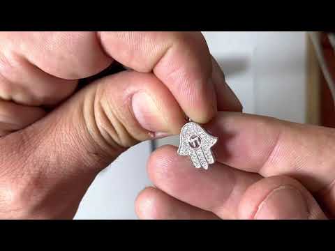 * שרשרת חמסה עם “חי” משובצת קריסטלים לבנים לגבר או לאשה מכסף סטרלינג 925 עם ציפוי רודיום המגן מפני השחרה.