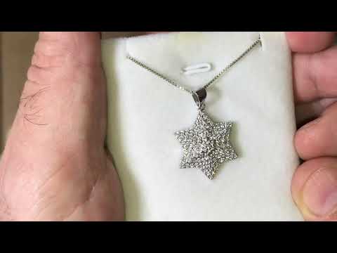 שרשרת "מגן דוד" מכסף 925 (2*2.5 ס"מ) משובץ עם קריסטלים לבנים וציפוי רודיום