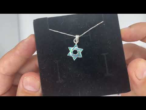 * שרשרת “מגן דוד” מכסף סטרלינג 925 אמיתי משובצת אבן אופל כחולה.