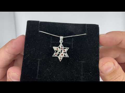 * שרשרת “מגן דוד” מכסף 925 עם עיטורי פרחים, משובצת קריסטלים אדומים. איכות וגימור מעולים.
