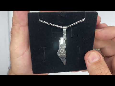 * שרשרת לגבר “מפת ישראל” עם מגן דוד והכיתוב “שמע ישראל.