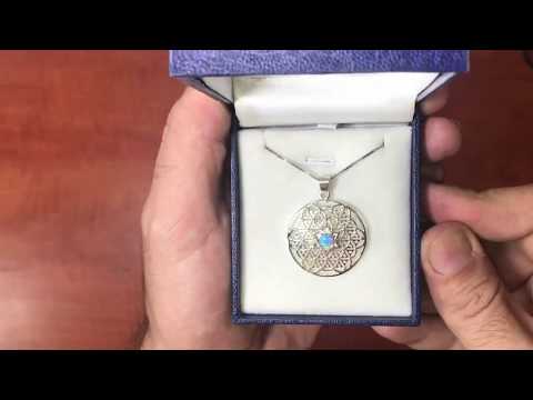 התליון משובץ באבן אופל כחולה עגולה
