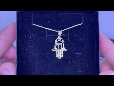 תליון "חמסה" עם הכיתוב "חי" משובצת באבן טורקיז כחולה