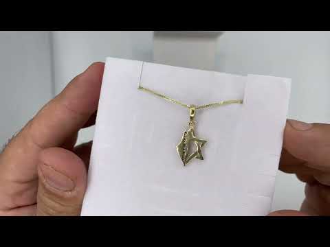 * תליון “מפת ישראל” משולב עם “מגן דוד” קטן מזהב צהוב 14 קראט קלאסי לגברים או נשים עם חריטה: “אין לי ארץ אחרת”.