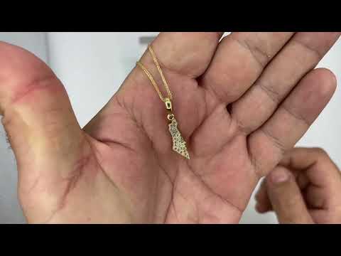 * תליון “מפת ישראל” מזהב צהוב 14 קראט משובץ עם קריסטלים.