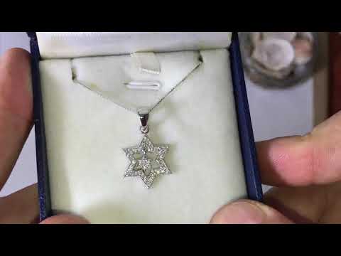 * שרשרת “מגן דוד” (1.8*1.6 ס”מ) מכסף סטרלינג 925 אמיתי. משובץ בעשרות קריסטלים לבנים באמצעות שיבוץ ידני.