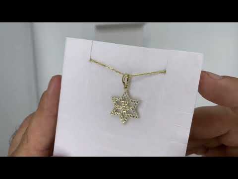 * תליון מגן דוד משובץ קריסטלים עם “עם ישראל חי” במרכזו מזהב צהוב 14 קראט לגברים או נשים.