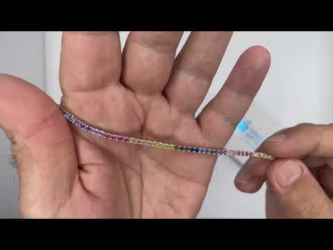 * צמיד “טניס” (2.5 מ”מ) לאישה מכסף 925 סטרלינג, משובצת קריסטלים עגולים צבעוניים.